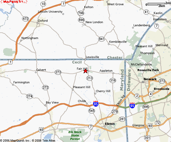 3. Turn right at the traffic light onto MD 273 East and proceed for 6 miles to Fair Hill.
